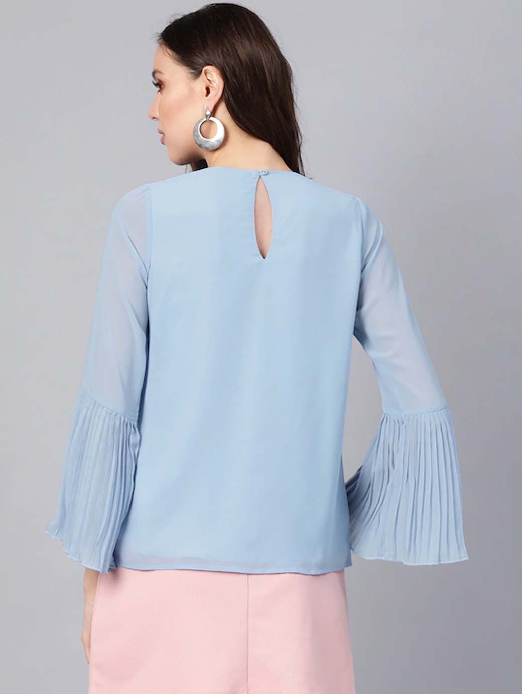 Blue Pleated Top With Frilled Hem