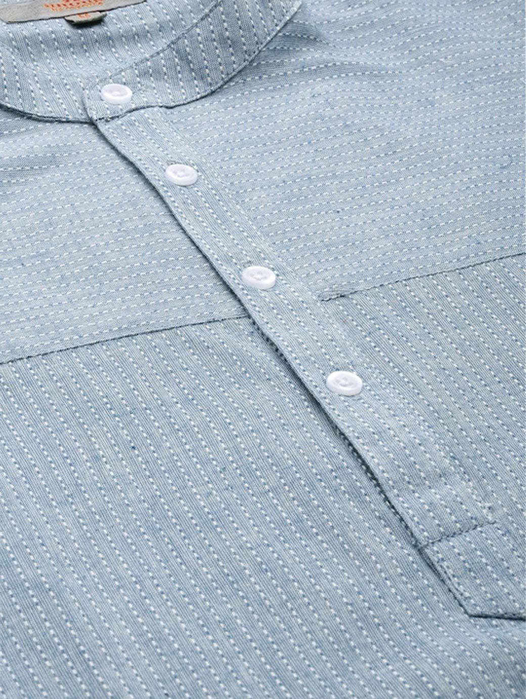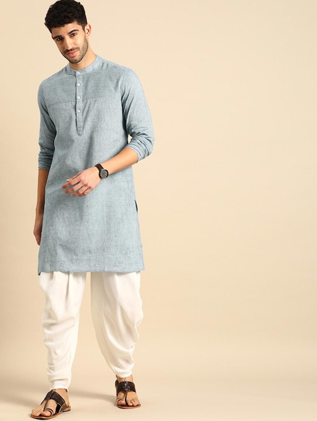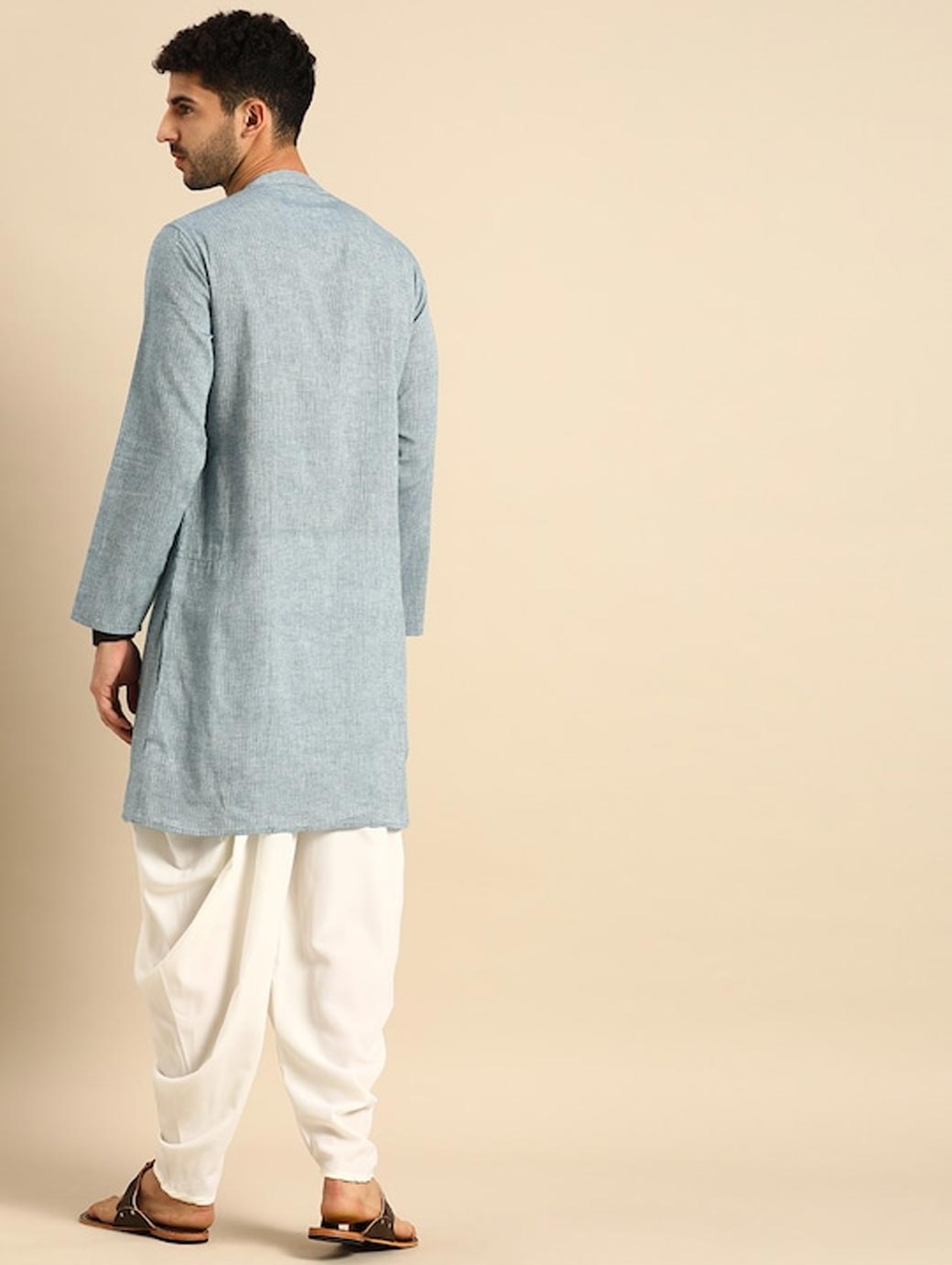Solid self design Straight shape Regular style Band collar, long regular sleeves 2 pockets Above knee length with straight hem Pure cotton machine weave fabric Patiala design: Solid Patiala Elasticated waistband Slip-on closure