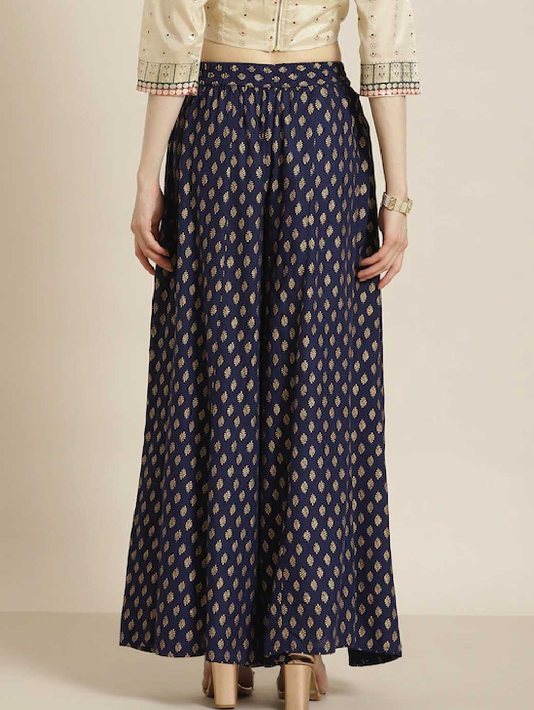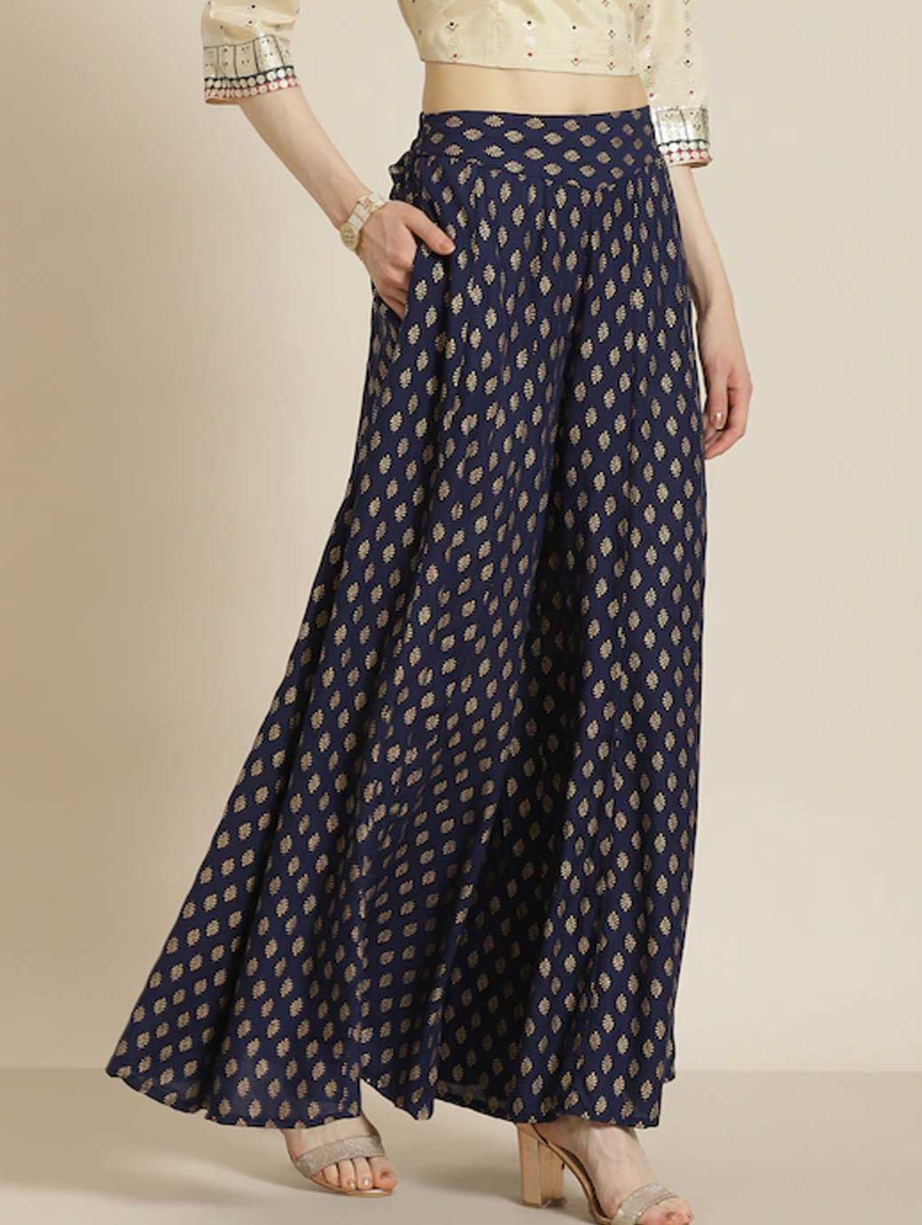 Navy blue and golden woven palazzos