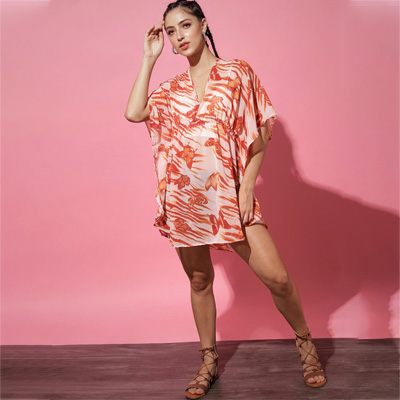 Pink and white printed tie-up regular shrug ,has short sleeves, straight hem